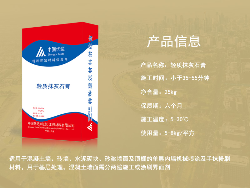 轻质石膏抹灰砂浆也叫做轻质抹灰石膏、轻质粉刷石膏,是以高纯度的半水脱硫石膏为主要胶凝材料,加入无机轻集料和适量的保水剂、缓凝剂等外加剂,经工厂预混制成的成品抹灰石膏。可广泛取代传统的水泥砂浆找平,用于室内建筑内墙和楼板的抹灰找平是建筑内墙以及顶板常用的一种抹灰材料,可以代替水泥以及石灰砂等,在适用性非常广泛,适用于任何墙体,克服传统抹灰的缺点,而且这种抹灰粘接力非常的强,能够与任何基材进行粘接,不会受到厚度的限制。在流动性以及饱水性上也是非常的,可以在0度进行施工,这种石灰膏环保无味、抗裂性效果好,具有保温隔热的效果,能够调节室内的湿度、干度方便施工,节省工期和界面处理的工序以及材料使用,淮北工程专用粉刷石膏。